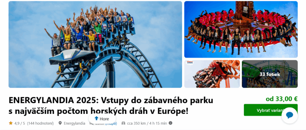 Zľavomat má v ponuke aj iné druhy vstupeniek do Energylandie, ako napríklad mimosezónnu 2-dňovú, celodennú pre dospelých a pod.