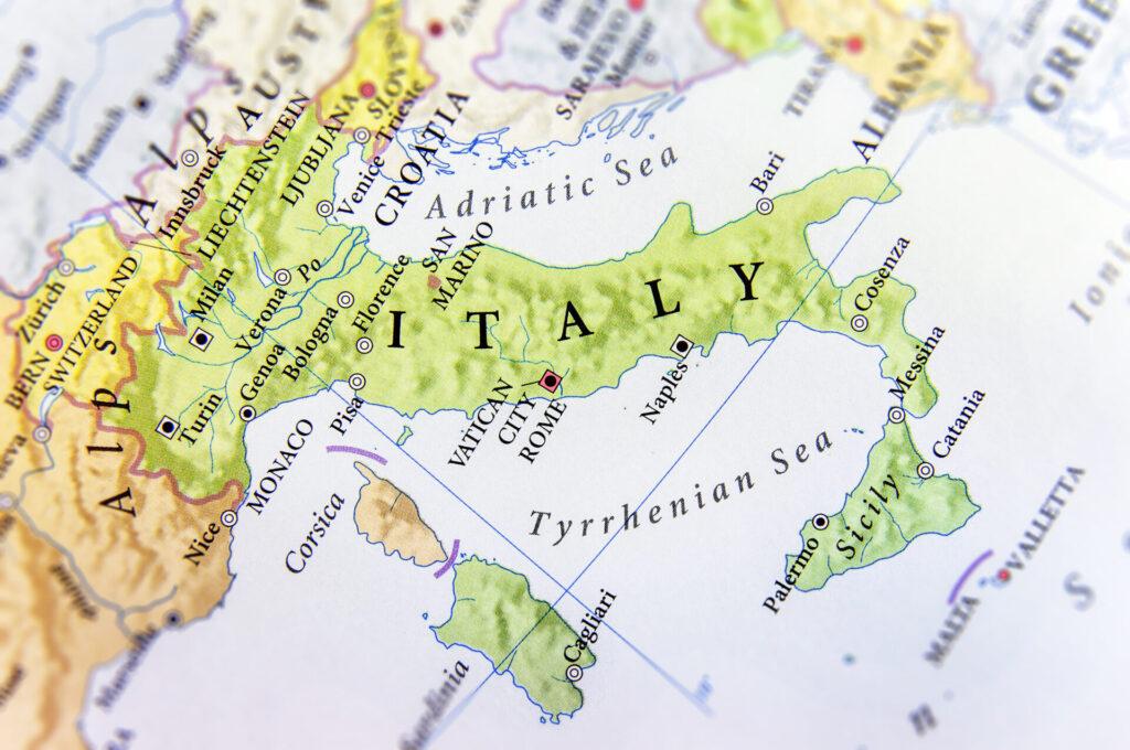 Mapa Talianska ukazuje jej geografickú rozmanitosť. Taliansko obmýva Stredozemné more, konkrétne Tyrhenské more na západe, Iónske na juhu a Jadranské na východe. Na severe susedí s Francúzskom, Švajčiarskom, Rakúskom a Slovinskom. Mapa Talianska ukazuje nielen rozsiahle pohoria, ako Alpy a Apeniny, avšak aj veľké jazerá, napr. Lago di Garda či významné rieky ako Pád a Tiber.