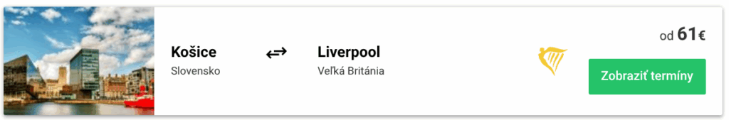 Zo Slovenska sa do Liverpoolu dá cestovať pohodlne, a to priamymi letmi z Košíc alebo cez dostupné prestupy z Viedne a Prahy.