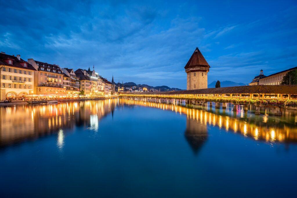 Kapellbrücke, postavený v 14. storočí, je najstarším krytým dreveným mostom v Európe a jeho unikátna architektúra s krásnymi malbami až do súčasnosti láka návštevníkov zo všetkých kútov sveta.