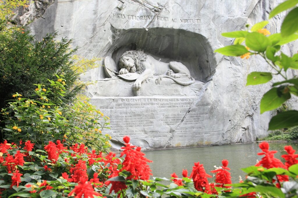 Táto socha levovej hlavy vytesaná v skale a sprevádzaná smutným levom, ktorý truchlivo leží na zemi, pripomína obete švajčiarskych strážcov, ktorí zahynuli v boji v službe francúzskemu kráľovi v roku 1792 počas Francúzskej revolúcie.