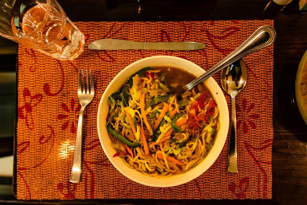 Tibetská kuchyňa je jedinečná a chutná, s dôrazom na čerstvé suroviny a tradičné tibetské chute. Typické jedlo môže obsahovať mäso a syr z jaka, momos (tibetské knedle), tsampa (pražená jačmenná múka) a thukpa (druh rezancovej polievky).
