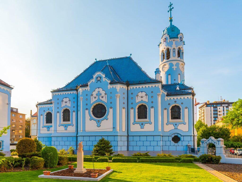 Kostol je zasvätený sv. Alžbete a jeho modrá farba určite zaujme každého turistu.