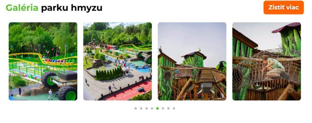 Ďalšou zaujímavou zastávkou je Park hmyzu, kde deti objavia až 28 druhov hmyzu z rôznych kútov sveta. Všetky exponáty sú zväčšené do ľudskej veľkosti, takže každý detail – od krídel modlivky až po telo cikády – je dokonale viditeľný. Aj v tomto prípade sa návštevníci môžu zapojiť do vzdelávacích hodín, ktoré pripravia školskí učitelia alebo samotní pracovníci parku.
